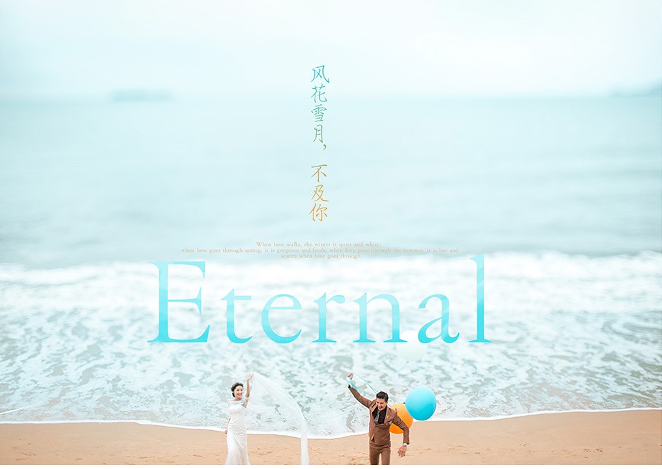 白天太强的光线会使人面部产生阴影,使人眯起双眼或是皱眉头,所以尽量选在傍晚拍海滩夕阳的海景,夕阳西下的整片天空全部都给你一种不一样的色彩,和金黄的沙滩相互交映,能够搭配出一种美丽的风格,在这种环境下拍摄的婚纱照绝对能够让你达到一种唯美浪漫的意境。