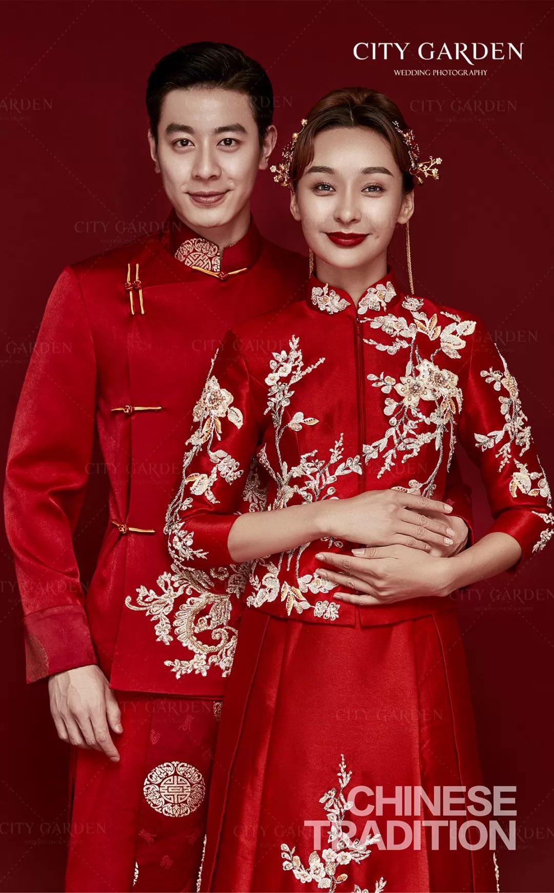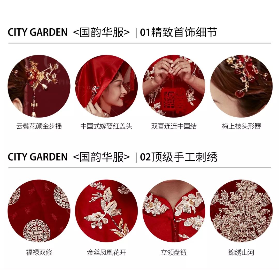 那些精致而美好的中国礼节,传统古老中国的寓意,寄托在手工刺绣与完美形制的嫁衣里,没有人会不喜欢中国风,这是国人一生必拍的婚照传承。