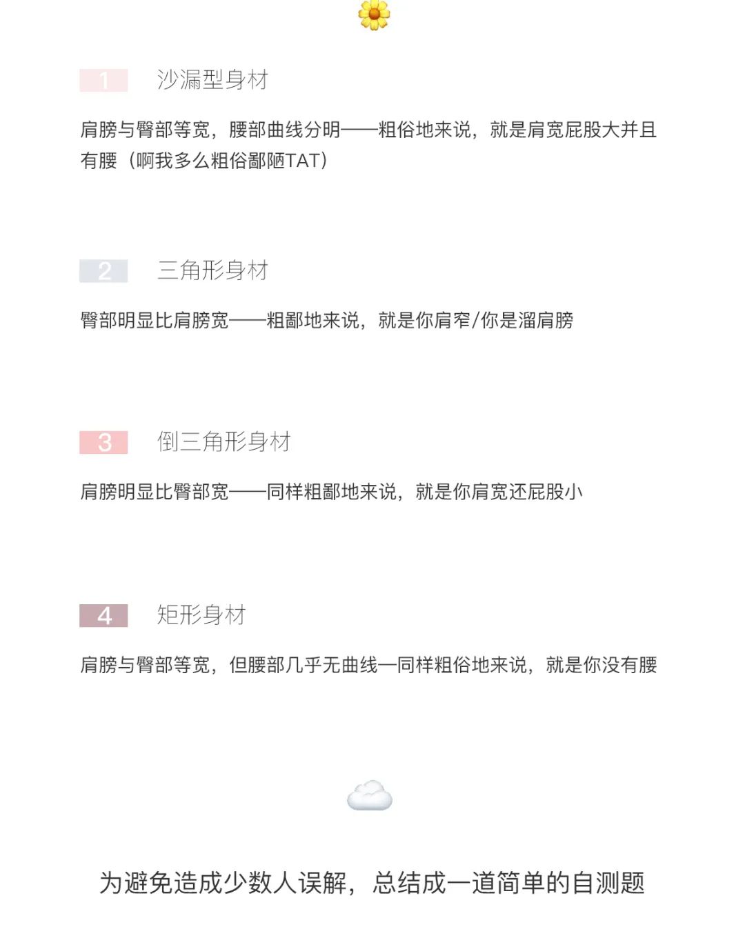 很体贴地争对上述四种体型给出了