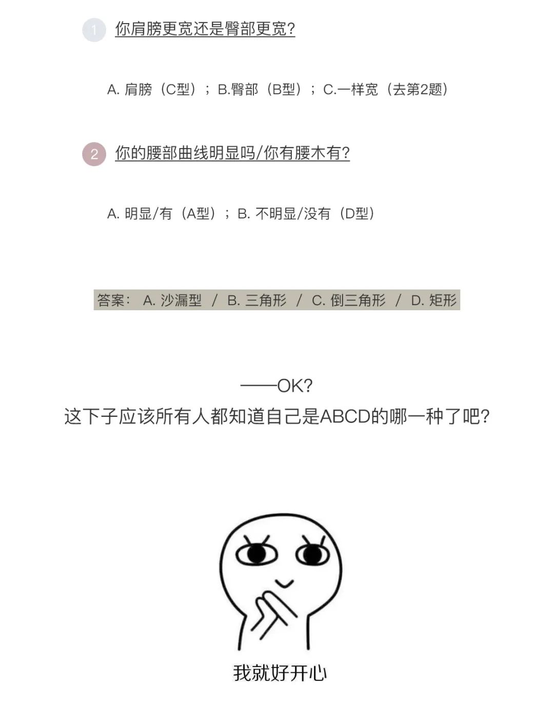 A.肩膀(C型) ; B.臀部(B型) ; C.一样宽(去第2题)