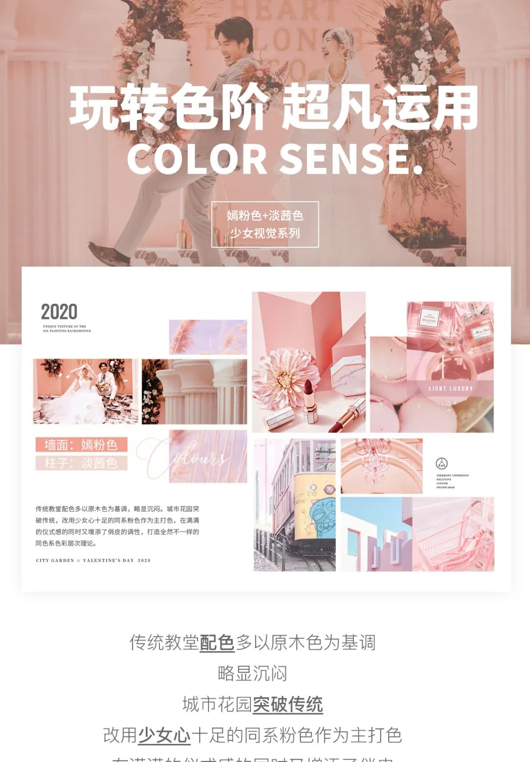 改用少女心十足的同系粉色作为主打色
