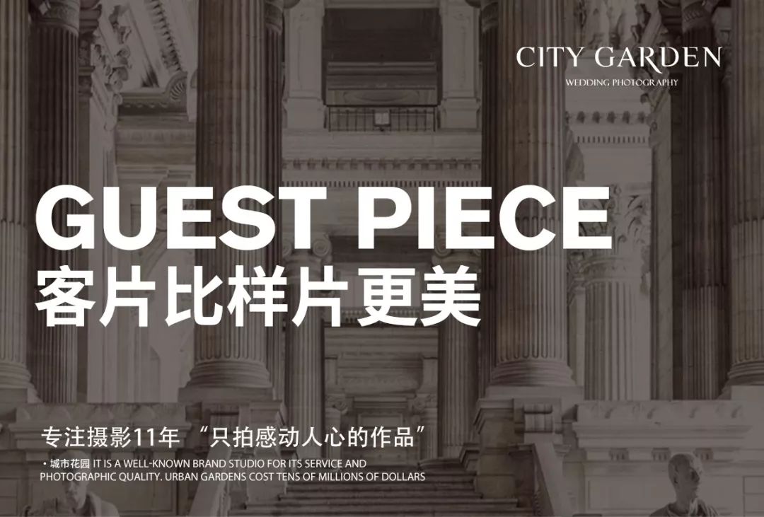• 城市花园提醒您:决定您的婚纱照前,一定要亲临婚照拍摄现场!看到您能拍的场景环境、摸到您能穿的礼服数量,再决定才不会后悔。 • 根据统计有95%的结婚新人,亲临「城市花园•婚纱影城」免费体验婚纱照拍摄过程,之后都选择了城市花园!