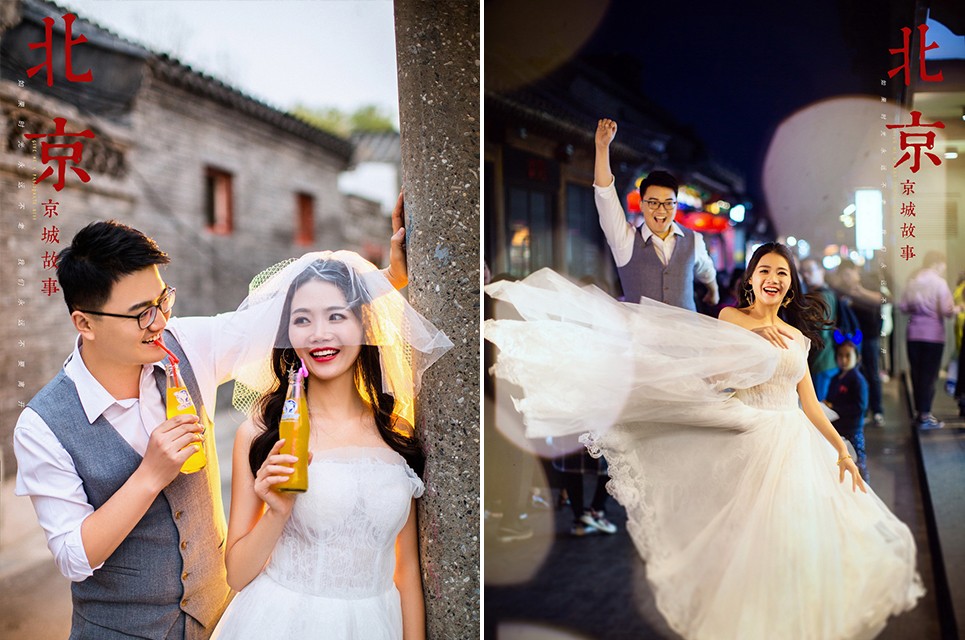 对此,北京城市花园婚纱摄影小编的建议是,如果你追求生活品质的话,可以去正规的店里定制质量上乘的婚纱。而如果你只是想买件婚纱随便穿穿,应付一下婚礼,那在网上随便选个几百来块钱的就行,头纱裙撑手套项链等基本也能配套增送,当然也质量堪忧,不过一天肯定是能撑过去的。另外,尽量选简单素雅的款式,一般不会出问题,因为版型熟练工艺要求少,如果你买个贴满水钻的,或者款式复杂的, 那么成品和展品的差距会相当大的。