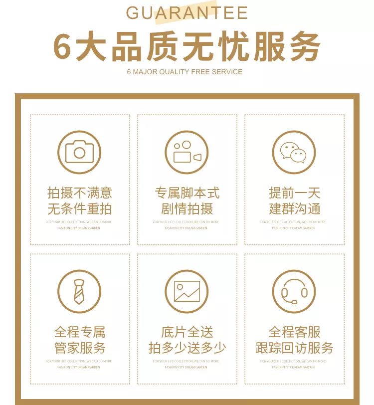 • 城市花园提醒您:决定您的婚纱照前,一定要亲临婚照拍摄现场!看到您能拍的场景环境、摸到您能穿的礼服数量,再决定才不会后悔。 • 根据统计有95%的结婚新人,亲临「城市花园•婚纱影城」免费体验婚纱照拍摄过程,之后都选择了城市花园!