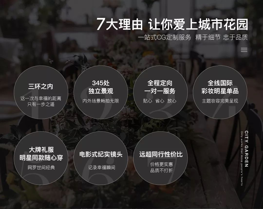 • 北京婚纱摄影哪里好城市花园提醒您:决定您的婚纱照前,一定要亲临婚照拍摄现场!看到您能拍的场景环境、摸到您能穿的礼服,再决定,才不会后悔。 • 根据统计有95%的结婚新人,亲临「城市花园•婚纱影城」免费体验婚纱照拍摄过程之后,都选择了城市花园!