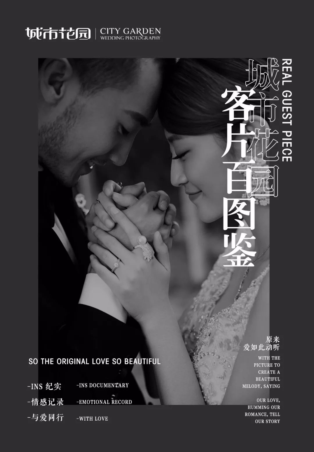 • 城市花园提醒您:决定您的婚纱照前,一定要亲临婚照拍摄现场!看到您能拍的场景环境、摸到您能穿的礼服,再决定,才不会后悔。 • 根据统计有95%的结婚新人,亲临「城市花园•婚纱影城」免费体验婚纱照拍摄过程之后,都选择了城市花园!