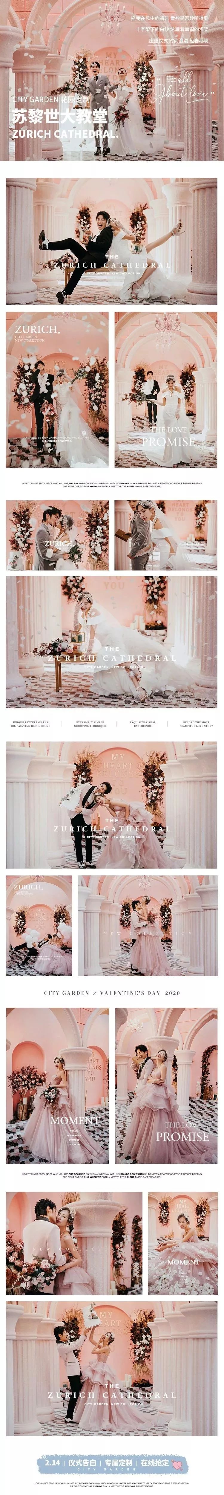 城市花园全新场景《苏黎世大教堂》网上预约抢定ING,全新视觉感受,不一样的婚照体验,开启云约会,带你走进被粉色围绕的高糖恋爱。