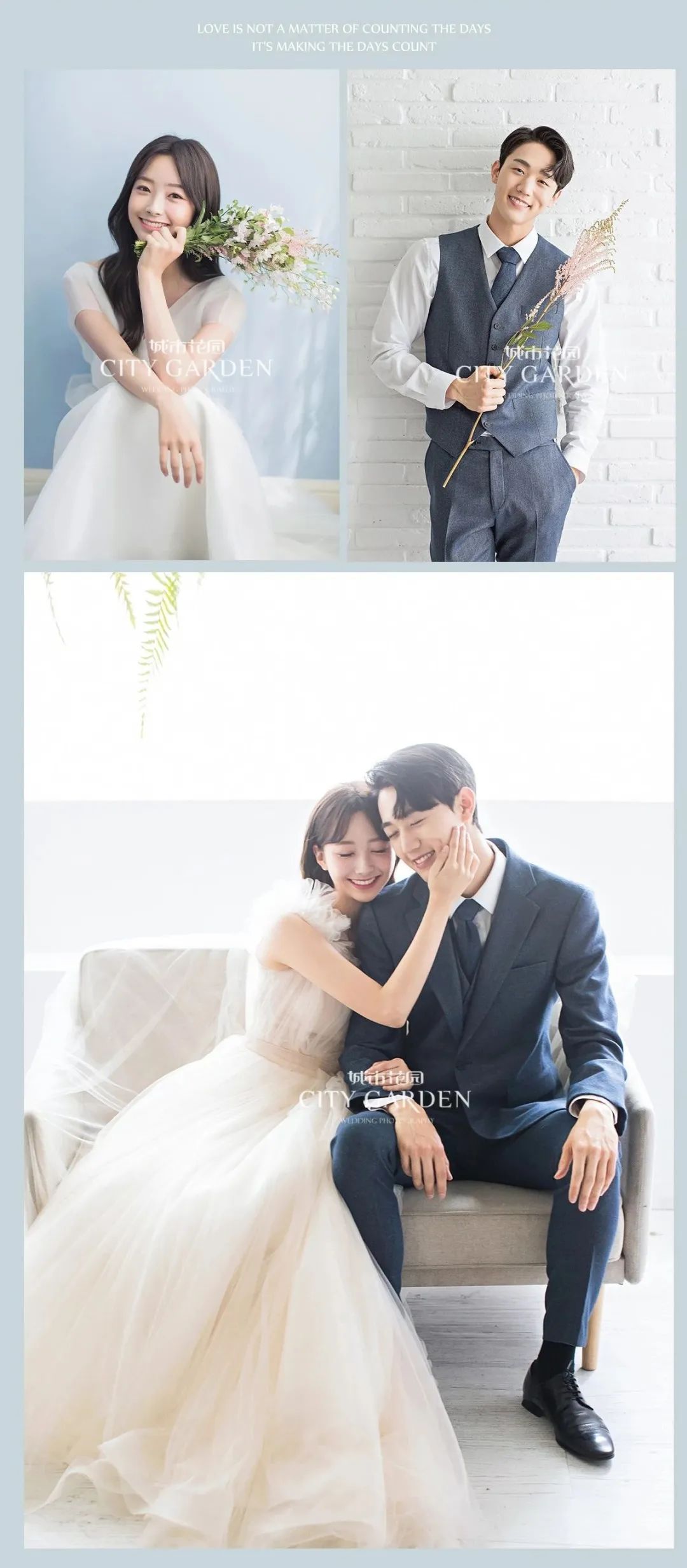 • 城市花园提醒您:决定您的婚纱照前,一定要亲临婚照拍摄现场!看到您能拍的场景环境、摸到您能穿的礼服,再决定,才不会后悔。 • 根据统计有95%的结婚新人,亲临「城市花园•婚纱影城」免费体验婚纱照拍摄过程之后,都选择了城市花园!
